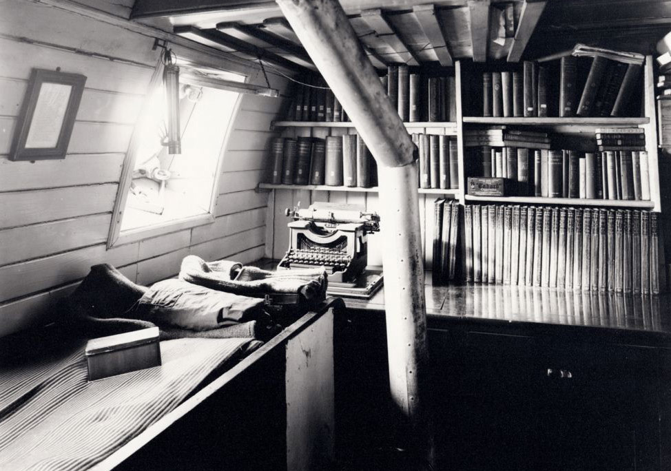Dostoyevski ve Shelley gibi klasiklerin yanında yaşadığı dönemin popüler yazarlarının kitapları da bu kütüphanede yerlerini almışlardı. Sol taraftaki kabin duvarındaysa Rudyard Kipling'in tanınmış If (Eğer) şiiri asılıydı. Kaptan şiiri buzullara çıkarken yanına da almıştı.