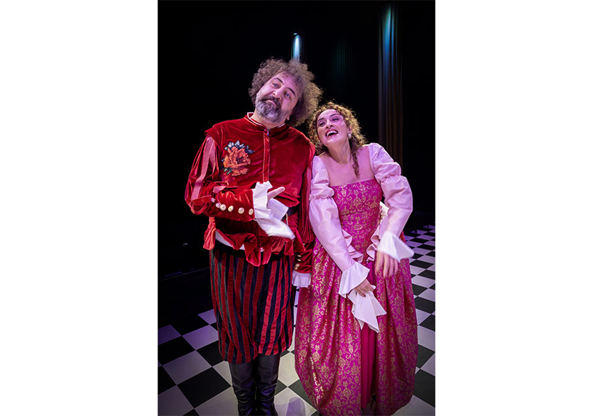 Oyunun dikkat çekici yönlerinden biri, neredeyse sözsüz bir pandomim olarak başlaması. Sessizlik ve jestlerle içinde bulundukları durumu anlatan oyuncular içi malzemelerle dolu üç sandıkla Elsinore Sarayı’nın satranç tahtası zeminine ayaklarını basarlar. Jestlerinden ve mimiklerinden anlarız ki bir sarayın içinde olmanın şaşkınlığı içerisindedirler fakat aynı zamanda mutlulardır. Çünkü tek istekleri artık gezici bir tiyatro gurubu olmaktan çıkıp, yerleşik tiyatro olabilmek, hatta sarayın himayesine girerek para kazanmayı garantileyip, oyuncular olarak hak ettikleri itibarı kazanmaktır. Sessiz ve bir o kadar coşkulu pandomimleri içerisinde nereye düştüklerinin farkında değillerdir tabii, henüz!