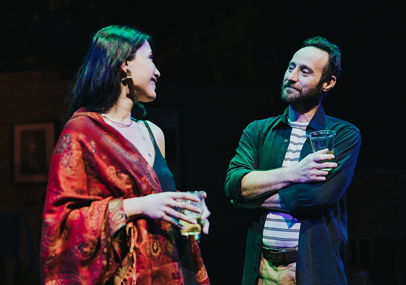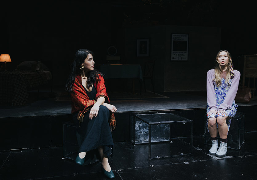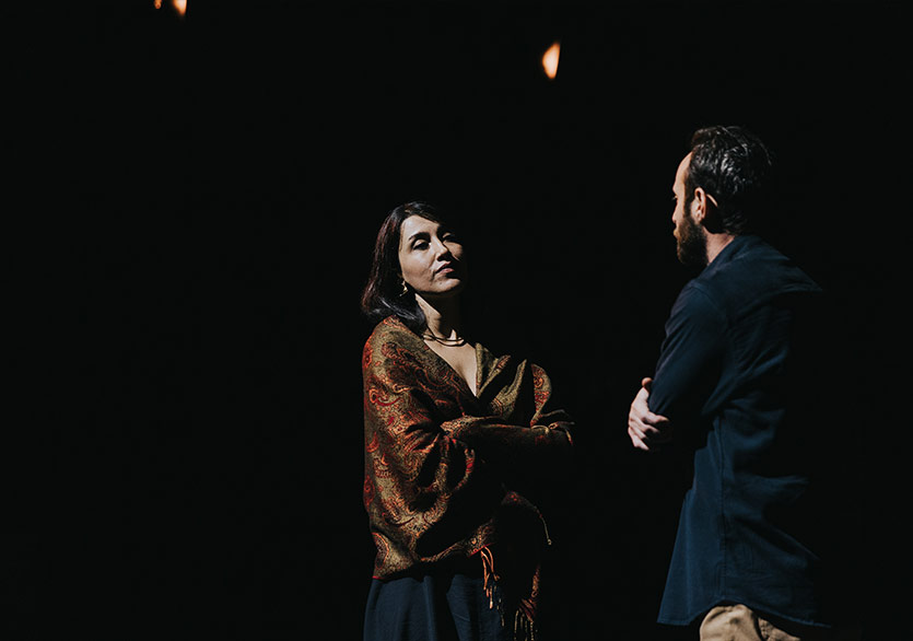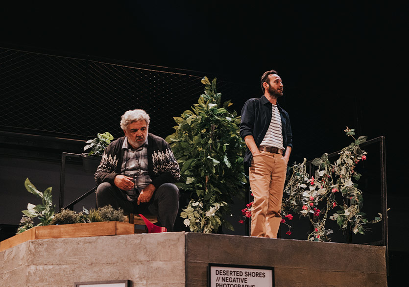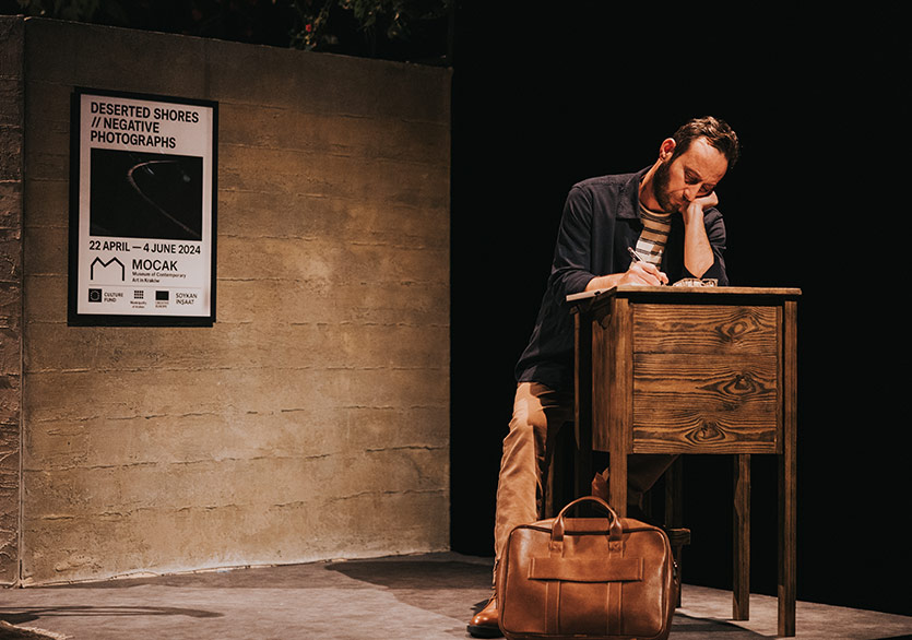 Oyunun müzikleri Vehbi Can Uyaroğlu tarafından hazırlandı. Metni yazarken kafamda sürekli Ruhi Su’nun yorumuyla Drama Köprüsü çalıyordu aslında. Görkem de Vehbi’yle çalışırken biraz buradan hareket etti. Ortaya hem çok tanıdık gelen hem de sahnenin atmosferine yeni bir yerden dokunan bir müzik dili çıktı. O tanıdıklık hissi ile oyunun kurduğu dünya arasında güzel bir gerilim oluştuğunu düşünüyorum. (Buradan dinleyebilirsiniz.)