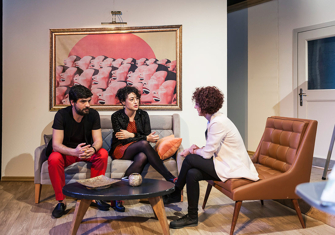 C.T: Oyunun yazım sürecinde diyalektik ortam oluşturmuştuk Nergis ile. Yazdığım her şeyi onunla paylaşma fırsatım oldu. Özellikle metnin endişe duyduğum yerlerinde çok desteğini gördüm. Yeni bir metin olması hem heyecan verici hem de birçok oyuncu ve yönetmen tarafından risk olarak görülebilecek bir durum aynı zamanda. Oyunumuzun yönetmeni Ali Altuğ, benim lise tiyatrosundan hocamdır. Oyunun bitmesine yakın bir zamanda bu oluşumdan, oyunu sahnelemek ve onunla çalışmak istediğimizden bahsettim. O da sağ olsun gururlandı ve hiç sorgulamadan yönetmeyi kabul etti. Daha sonra oyuncu arkadaşlarla paylaştık, onlar da olumlu yaklaştılar. 40 prova sonrasında da prömiyerimizi yaptık.
