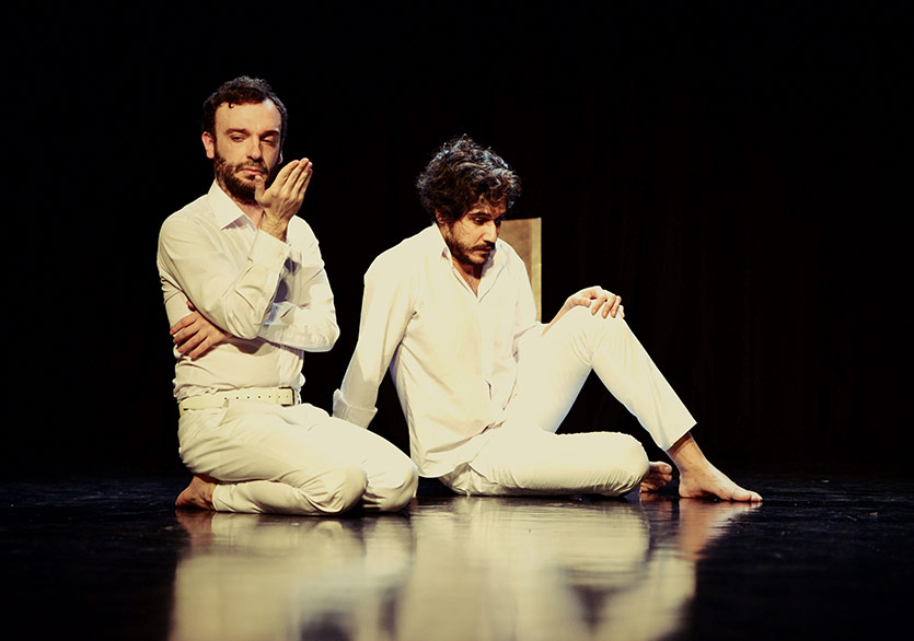 Tüm bu birbirinin içinden hızla geçen çoğunluğu yüksek ritimdeki sahneler için ideal sade bir dekor görüyoruz sahnede. Oyun aktıkça peyderpey yükselen ritmi kompanse etmesi açısından, geri kalan ögelerdeki sadelikler yerine oturuyor. Bu düzeni, bazen ritmin ötesine geçmeye çalışan ışık hareketleri ve filtrelerinin göz kamaştırıcılığı bozmaya çalışsa da pek başarılı olamıyor. Sahnede izlediğimiz hayli sağlam kurulmuş olan metin ilk olarak Galata Perform’un Yeni Metin Yeni Tiyatro Festivali kapsamında okunmuş. Zira yazarı Volkan Çıkıntoğlu bu atölye dâhilinde yazmış oyunu. Metni okuma fırsatım olmadığı için, metnin bu şekilde mi yazıldığı, yönetmeni Celal Mordeniz’in dokunuşuyla mı bu şekle evrildiğini bilemiyorum ancak bu birbirinin içinde hızlı geçişkenlik sağlayan sahneler zekice kombine edilmiş yerli bir iş seyretmenin mutluluğunu hissettiriyor. Bu sağlam yapıyı tamamlayan elbette üç şahane oyunculuk var. İlk sahnede sevgilisinin ayrılmaya yüz tuttuğu, iyi bir yazar olduğu düşüncesine sonuna kadar inanan ama kitaplarını bir türlü bastıramayan yazarda; aynı zamanda oyunun yazarı olan Volkan Çıkıntoğlu’nu groteskvari bir oyunculukla izliyoruz. Bu karakter oyunun komedi çatısını oluşturuyor denilebilir. Bu çatıyı ayakta tutan diğer oyuncu ise; ona zıt bir şekilde -ki oyunun hikâyesinin zaman zaman bu iki karakterin çelişkisinden beslendiğini görüyoruz- dini bütün bir kişiyi canlandıran, Trom isimli tek kişilik performansından tanıdığımız Hakan Emre Ünal. İki oyuncuya göre daha sade bir performans gösteren Doğu Can’ı ise ilk sahnede ablasına eşcinsel olduğunu açıklayan karakter olarak izliyoruz, bu karakter diğer oyuncular arasında denge kuran bir bağlantı pozisyonunda.