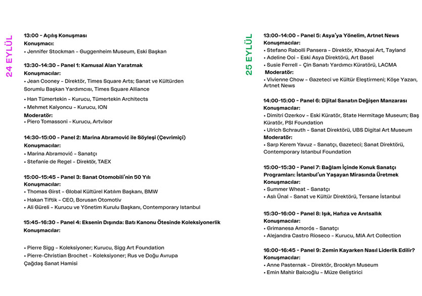 CIF Dialogues 2025 Contemporary Istanbul Vakfı (CIF), 24–25 Eylül tarihlerinde “Dağılan Koordinatlar: İstanbul ve Değişen Sanat Haritası” başlığıyla CIF Dialogues 2025’i düzenleyecek. The Pavilion, Tersane Hall B’de gerçekleşecek olan panel, önümüzdeki 20 yılın çağdaş sanat deneyimlerini, kurumlarını, sanatçılarını ve üretim tekniklerini tartışmaya açacak. Vakfın Sanat Direktörü ve program küratörü Sarp Kerem Yavuz’un hazırladığı etkinlik, ABD’nin Türkiye Diplomatik Temsilciliği partnerliğinde gerçekleşiyor. Guggenheim Onursal Başkanı Jennifer Stockman’ın açılış konuşması ve “Focus: America” temasıyla öne çıkıyor. Programı aşağıda görebilirsiniz.