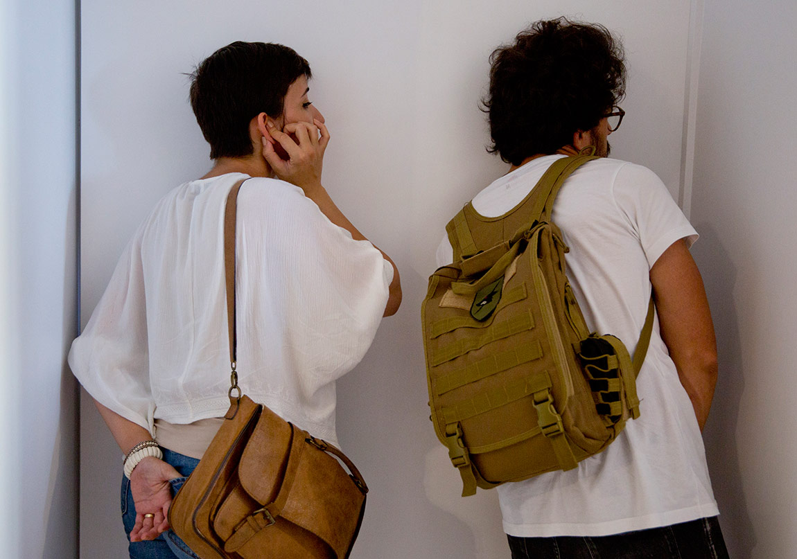 Mekânın en geniş salonuna yerleştirilen Ali Elmacı’nın Güzeller Birbirlerine Aşık Olduklarında, Çirkinler Mutluluktan Haykırıyorlardı adlı yağlı boya eseri ve Joana Kohen’in Look of Now yerleştirmeleri hem ziyaretçileri hem de diğer işleri gözetlemeye devam ediyorlar. Mekânda gezinirken sürekli sizleri izleyen birileri olduğunu hissetmeniz serginin en güçlü taraflarından biri. Galeriye ait olan güvenlik kameralarının sürekli açık olması ve izleniyor olduğumuzu bizlere tekrar hatırlatan eserler de aynı zamanda birbirleri ile uyum içerisinde görev alıyorlar. Joana Kohen’in bu sergi için özel olarak ürettiği sanatçının sadece gözlerinden oluşan üçlü yerleştirme, boş beyaz bir duvarı bir gözetleme duvarına çevirerek aynı zamanda sanat eseri sanatçı, izleyen, yorumlayan ve gözleyen terimleri arasındaki boşluklara işaret ediyor. Ali Elmacı’nın eserinde görmüş olduğumuz çift kafalı (iki-yüzlü/suratlı) karakterler, özellikle Türk dizi karakterleri, kullanılan mekânlar ve izleyicilerin tepkilerini ölçen, sahte yaratılan bu dünyalara duyulan fetişi anlatan sarkastik bir yaklaşımı işaret ediyor.