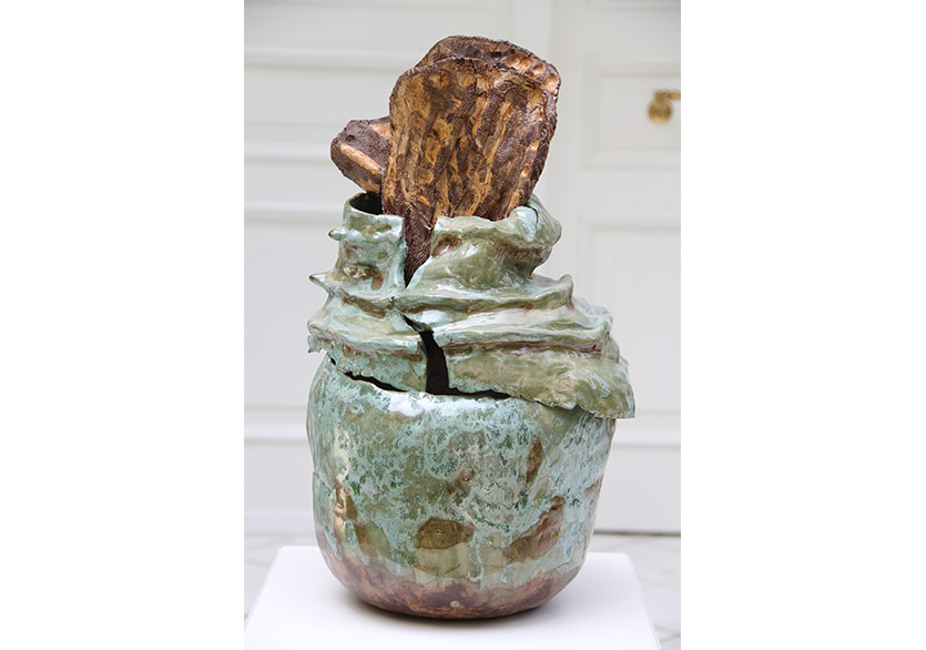 Son olarak, birinci katta tırtıl, koza ve kelebek arasında biçimsel ve kavramsal bağlantılar kuran ve çeşitli seramik elemanlardan oluşan bir enstalasyon yer alıyor. Sanatçı burada dönüşüm fikrini somut sergi alanıyla birleştirerek mevcut mimari mekânı, şaşırtıcı estetik karşılaşmaların gerçekleştiği büyüleyici bir alana dönüştürüyor.