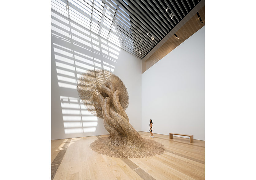 Müze henüz açılmadan görselleriyle OMM ile bütünleşeceğinin sinyallerini veren ve Instagram’ı ele geçiren Tanabe Chikuunsai IV’ün mekâna özel yerleştirmesi ise müzenin ana salonunda yer alıyor. Japon bambu sanatçısının büyük boyutlu eseri adeta müzenin bir uzantısı olarak konumlanıyor. Japon felsefesindeki beş elementi temsil eden eser; ateş, su, hava, toprak ve boşluk/uzayı betimliyor. Eserde beş dal yer alıyor, dört dal dört elementi temsil ederken beşincisi ise Eskişehir ve Eskişehir halkını simgeliyor. Bu beş element bir araya gelip birbirine sarılarak evrene yayılıyor.