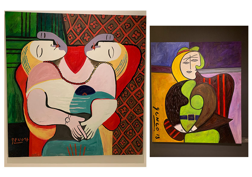 Genco’nun Kübizm’e yaklaşımı da en az Picasso’ya bakışı kadar önemli. Kübistler insan formunu, figürü deforme ederken organ sayısını sabit tutmuşlardı. Genco Gülan ise yapıtlarında insan bedeninin biyolojik olarak dönüşmesinden sonra ortaya çıkabilecek imgeler üzerinden yeni bir tartışma başlatmak istiyor. Picasso fosforlu renk kullanmıyor, organ arttırmıyor ancak Genco kendine has esprili üslubuyla fütürist bir yorum kazandırıyor.