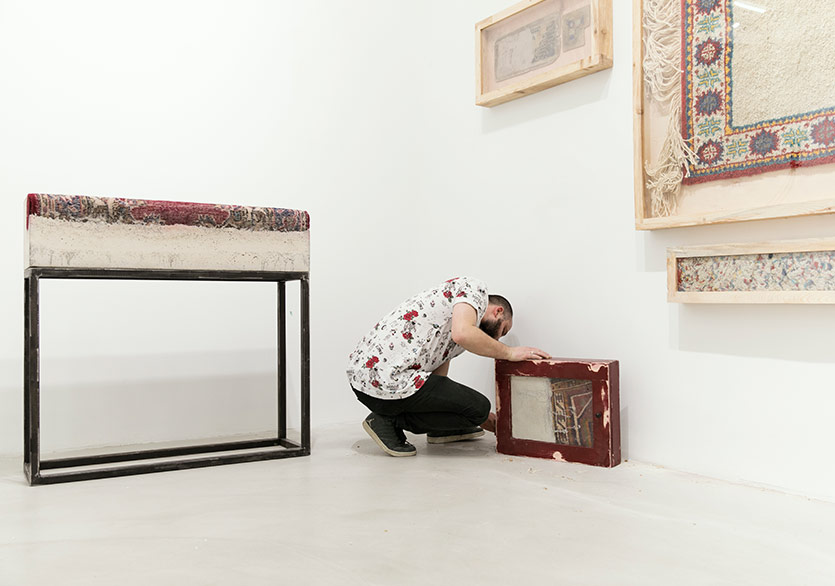 Halı dokuma, çok eski bir kültür kökenine dayanıyor. Özellikle Yüklük Serisi’nde bulunan neon ışık ile çerçevelenmiş olan çalışmanız dikkat çekici. Dokuma halıları, dökümlerin içine yerleştirerek bu yozlaşmış kültüre nasıl bir atıfta bulunuyorsunuz?