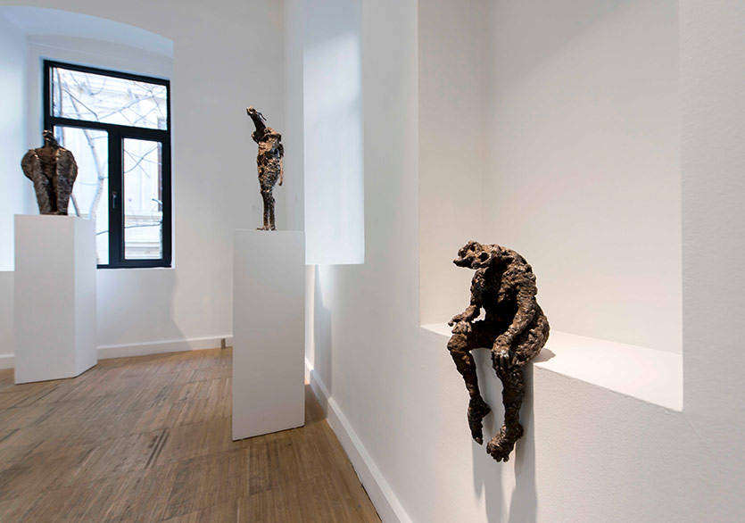 Küçük küçük eskizler hep alıyordum dediğim gibi ama bunları bu şekilde sergileme düşüncesini planlamamıştım. Eskizlerim kayboluyor diye bunları atölyede bir duvara tek tek bantlamaya başlamıştım, sonraları çerçevede girince işin içine, atölyedeki o samimi ortamı yaratabilmek adına bu çalışmaları o şekilde sergilemeye karar verdim. Aynı kafa motifine gelecek olursak, ruhun betimlenmesine dayanıyor. “Dışarıdan gördüğümüz derimiz olmasaydı insan nasıl görünürdü?” diye bir eleştiri getirerek iyilik ve kötülük üzerinde basit bir arayışa girdim.