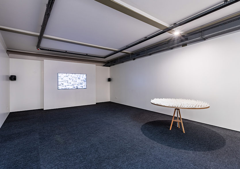 Yerleştirmenin dairesel formu ve videonun başlangıçla son arasındaki kesintisiz akışı, dilin kendi döngüselliğine işaret ediyor. İzleyici, bu döngünün merkezine bedenini yerleştirerek zamanın kırılmalarını ölçerken, harflerin mekânda oluşturduğu sınırları aşan sesleri de takip ediyor. Her harf kendi alfabesinden kopuk görünse de diğer harflerle paylaştığı ortak titreşim yeni bir düşünme alanı açıyor.