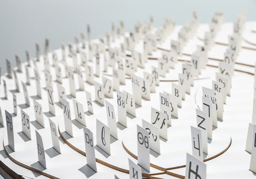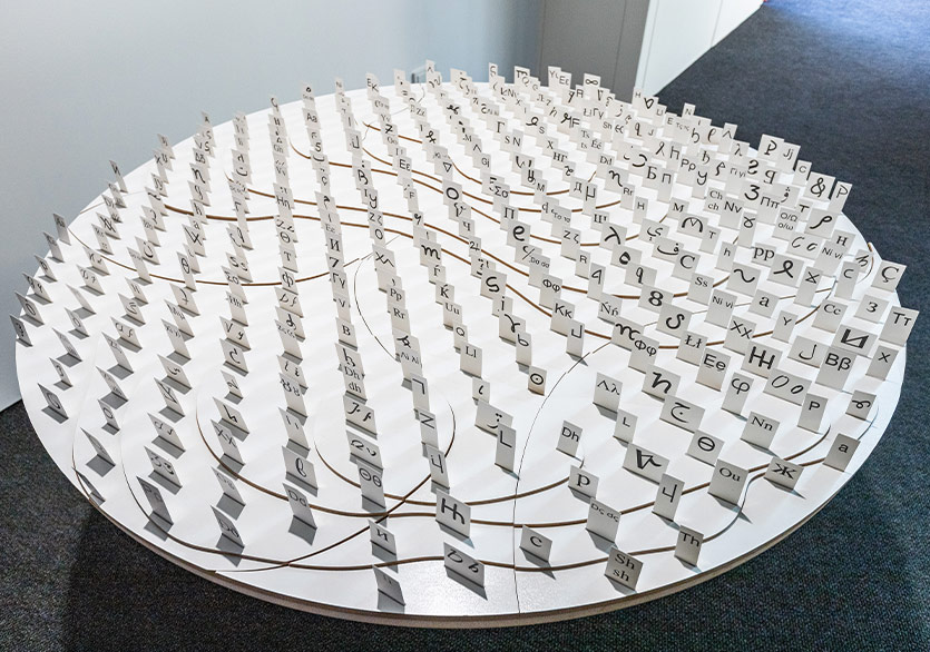 Dilek Winchester, üretimini uzun süredir dil tarihi, alfabe politikaları ve çeviri eyleminin dönüştürücü etkileri üzerine yapıyor. Farklı diller arasında dolaşan metinlerin nasıl yeni anlamlar ürettiğini ya da nasıl sessizleştirildiğini inceleyen bu pratik, Osmanlı coğrafyasının çok dilli yapısıyla da iç içe geçiyor. Winchester’ın bienaldeki yeni işi 410 Harf, bu araştırmanın merkezine yeniden sorulması gereken bir soruyu yerleştiriyor: Bir alfabe yalnızca okunur mu — yoksa zaman, aidiyet ve kimlik de onunla birlikte mi şekillenir?