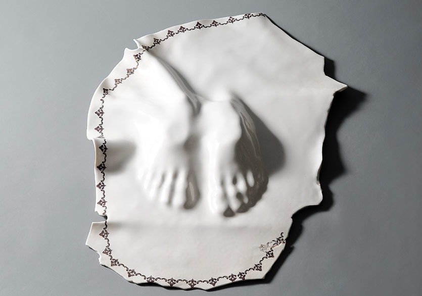 Malzeme kullanımı ve seçimi, seçtiğim ve üzerine çalıştığım kavramla birlikte ortaya çıkıyor ve meselenin temelini oluşturuyor aslında. Kavram ve malzeme ile yeni bir dil geliştirmeye çalışıyorum ve bu durum malzeme skalamda çeşitlilik oluşturuyor. Seramik, porselen, dikiş, buluntu nesne vs.