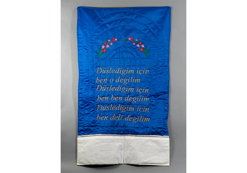 Seccade anneannemin kendi çeyizi için işlediği ondan bana kalan bir parça, dolayısıyla otobiyografik bir tarafı da var bu işin. Doğduğumuz andan itibaren yüklenmeye başlayan ve dayatılan roller ile ilgili bir iş.