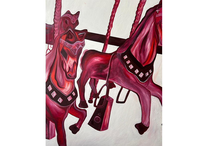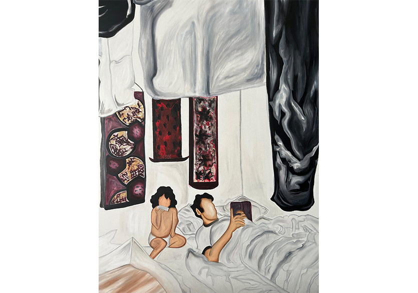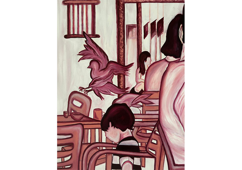 Renkler benim için dönemsel bir takıntı gibi her yıl belli tonlara yoğunlaşıyorum. Son zamanlarda kırmızı ve pembe etrafında dönüyorum. Bu iki rengin işlere dramatik bir atmosfer kattığını fark ediyorum ve aynı zamanda kendi iç dünyamla da uyum sağlıyorlar. Kırmızı bana özellikle çok güçlü geliyor; aynı anda birçok duyguyu harekete geçiriyor. Kompozisyonları ise haftalarca zihnimde tartıp deniyorum, ardından tuvale aktarıyorum.