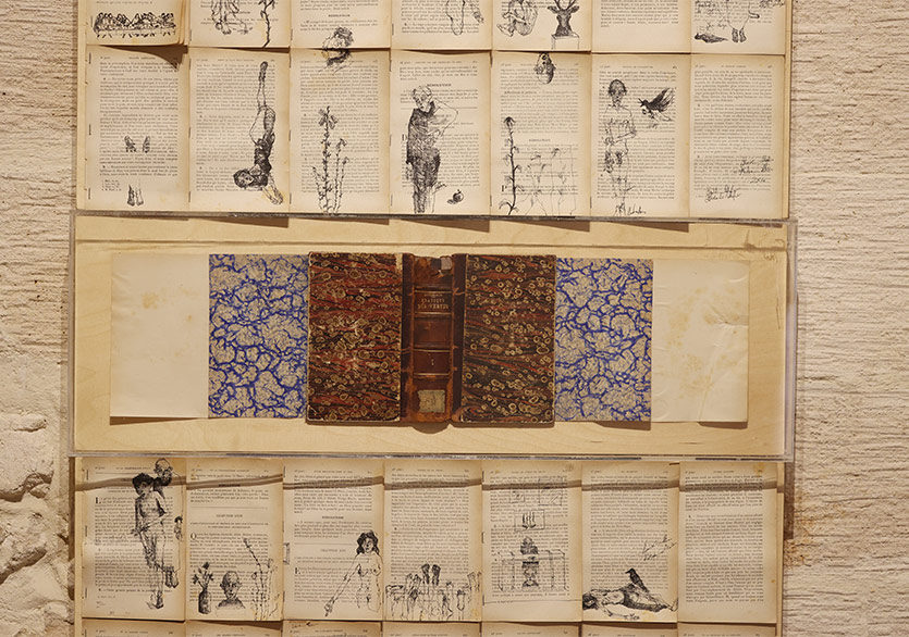 Programın ilk dönem katılımcıları Ahmet Öktem ve Mehmet Akan’ın birlikte ürettikleri Erdemli Bilgiler adlı çalışma ise aynı odada yer alan bir nişin içerisine konumlandırılmış. Çalışma, Öktem’in Mardin’deki sahafları gezerken seçtiği bir kitabın ahşap bir plaka üzerine açılması ve üzerine Mehmet Akan’ın rapido kalemle yaptığı skeçler, çizimlerden oluşuyor. Mardin’de Kebikeç sahaftaki kitaplar arasından sanatçı Ahmet Öktem tarafından seçilen bu kitap 1903 yılında basılan Fransızca bir din kitabı, içeriği ise Notre Dame Kilisesi’nin papazına sorulan sorular ve kendisinin verdiği yanıtlardan oluşuyor. Öktem’in de ifade ettiği gibi 120 yılı aşan yaşamında bu kitap bir şekilde Mardin’e gelmiş ve bu coğrafyanın kültürüne, ortak kültürel hafızasına eklemlenmiş. Çok dilli, çok dinli, çok kültürlü coğrafyanın bir parçası hâline gelmiş. Üzerine Mardinli bir sanatçının Mehmet Akan’ın kendi kişisel ikonografisinden seçtiği çeşitli imgeleri resmettiği kitap usta-çırak ilişkisinin tarihine, birlikte üretimi hatırlatan minyatür geleneğine kadar düşüncemizi çekiyor. Diğer yandan, Öktem’in seçimi ile konuk sanatçı programının üretimleri arasına katılan bu kitap tıpkı bir ikona gibi yerleştiği nişin içerisinde öylece izleyene bakarken sanatın ne olduğu, temsil sorunu, sanat eserinin kutsallığı, müellifin kim olduğu, sanatçının yaratıcı rolü üzerine bir dizi kavramsal sorgulamayı da akla getiriyor. Sanat Tanımı Topluluğu (STT) kurucu üyeleri arasında yer alan Öktem, birlikte üretim pratiğini uzun zaman önce deneyimlemiş bir sanatçı-eğitmen olarak bilgi ve tecrübe aktarımı ile, verdiği eğitimler, seminerlerle de Mardin’deki konuk sanatçı programının ilk dönemine katkıda bulunmuş. Exit’i Mardin’deki sanatçıların, gençlerin akademilerde aldığı kanonik eğitimi zenginleştirecekleri, çağdaş sanat alanındaki güncel gelişmeleri takip edebilecekleri alternatif bir eğitim mekanına dönüştürmek üzere fikirler ve öneriler paylaşmış.