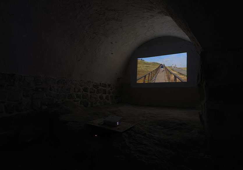 Sergi açılışına kadar çalışmaların devam ettiği, mekânın tarihsel ve kültürel göndergelerine göre kurulmuş, adeta bir şantiye alanına benzeyen bu odanın bağlandığı mağarada, tüm programın hikâyesini içeren bir video akıyor. Evde Süryani bir ailenin yaşadığı zamanlarda bu mağaranın bir ibadet yeri olarak kullanıldığını, daha sonraki yıllarda bir başka sahibinin ise mekânı depo olarak kullandığını öğreniyoruz. Şu anda ise farklı sanatçıları, kuşakları, kültürleri, fikirleri bir araya getiren bir mayalanma alanı ve sanat üretimlerin görünür hâle geldiği bir sergi mekânına dönüşmüş.