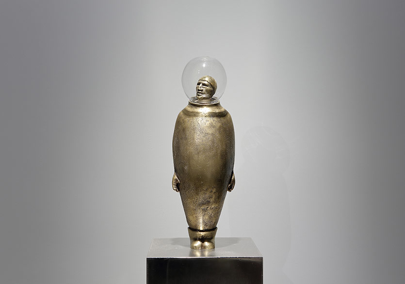 Sergi başlığı olarak kurduğum “Dünya Ne Düz Ne Yuvarlak: Tam Bir Silindir” ifadesini bir metafor olarak kullandım ve bu metaforda oluşan anlamın var olan gerçekliğin kendisine bir saldırı olarak, yeni bir alternatif biçimden öte yeni bir gerçeklik olarak sundum. Sergide de bu alegorik anlamı biçime dönüştürdüğüm silindir dünya modelleri yaptım. Bu iş ve diğer işler de serginin alt okumasında yatan post-truth kavramıyla birleşiyorlar. İddiamı öne sürerken nesnel bir gerçekliğe dayandırmadığım bu ifademi günümüz politikası ve kitle iletişim ağıyla ilişkilendirerek ortaya koyuyorum. Hakikatin maharetli ellerle deforme edilmesi, ortadan kaldırılması, sündürülmesi ve boşalanın yerine konulanın kitleler tarafından koşulsuz karşılık bulması tam da post-truth dediğimiz bir durum. Sergiyi kurgularken fark ettiğim bir mesele de hakikate yapılan her müdahale ve sündürülen her gerçekliğin, aslında özneyi yavaş yavaş ortadan kaldırıyor olması. Özne, bu aşamada yer çekimsiz bir gezegende oradan oraya savrulan varlıklara dönüşüyor. Dolayısıyla onun yaşadığı gezegen de artık bu dünya değil, tercih ettiği, ettirildiği silindir bir dünya olmalı. Bu aşamada sergide yer alan figürler ortaya çıktı diyebilirim. Yeni bir gerçekliğin yeni özne modellerini tarif ediyorum. Bu modeller artık bu gezegende değil bambaşka bir yerde yaşayan, kendi coğrafyasındaki meseleleri görmezden gelen varlıklar. İşin diğer tarafı, artık her şey olağan çıplaklığıyla açıkça yaşanırken ve bu durumun teknik olarak da görülebilmesinde hiçbir mâni olmamasına rağmen, yine de sesinin çıkmamasıdır.