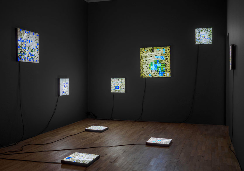 Serginiz, dünyayı bağımsız bir zaman algısıyla ele alırken kurgulanmış haritalar, veri akışları ve sistematik düzene dair sorgularıyla çok katmanlı bir atmosfer yaratıyor. Bu bağlamda serginin araştırma sürecinden ve sergide üzerinde durduğunuz katmanların birbiriyle olan bağlantılarından bahsedebilir misiniz?