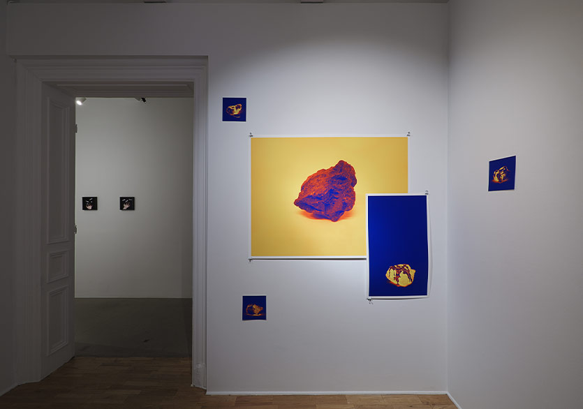 kazara gerçek isimli çalışmanızda, kurşun dökülen taşlar termal kamerayla pozlanarak doğada var olanın teknolojik temsiliyetiyle sunuluyor. Sergide taş bir metafor olarak aslında birçok kez karşımıza çıkıyor. Bu nesnenin sergide kurduğu bağlamı ve sergiye dahil etme sürecini biraz açabilir misiniz?