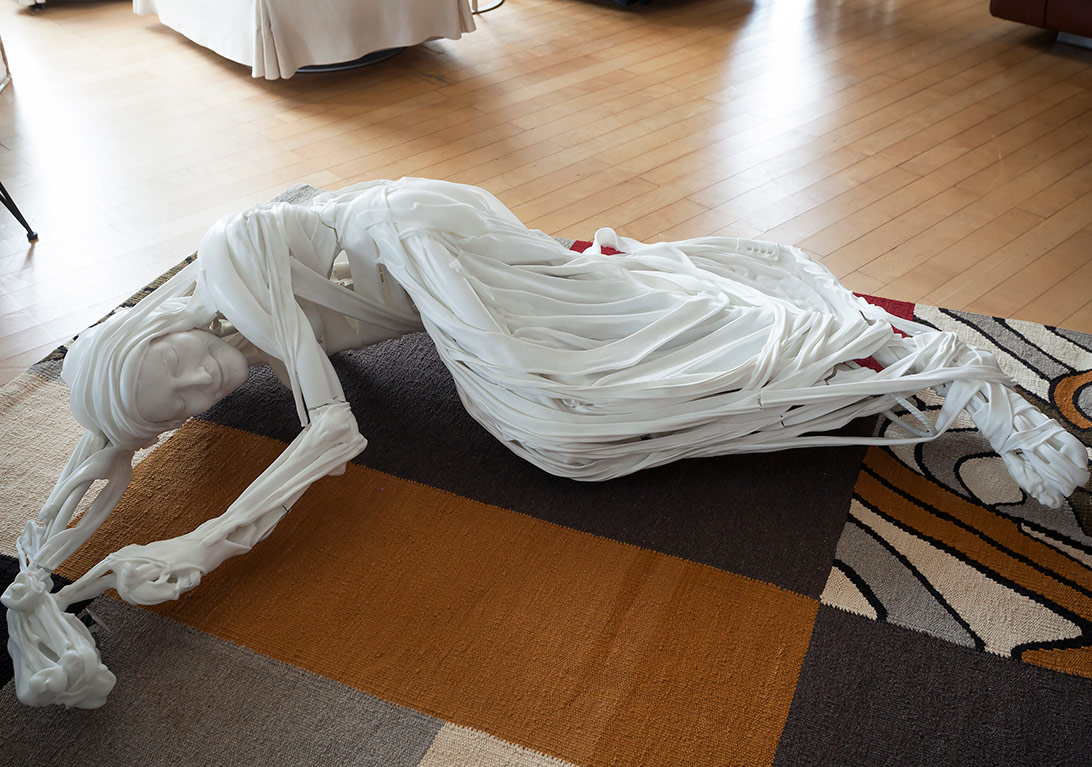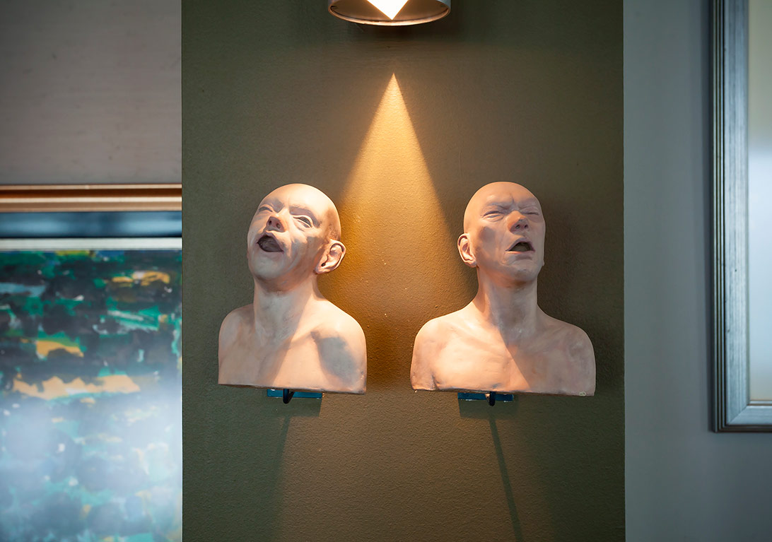 Genellikle evimizde. Fakat evin içinde çok sık değişiklik yapmak istemiyorum çünkü ışık ve duvarlarına göre her iş mekâna uymayabiliyor. Onun için depolarımız var, iş yerimiz var ve sırf kendimize özgün işlerimizi koyduğumuz küçük bir evimiz var. İlerde imkânımız olursa ve bu amaçlı bir alanımız olursa orda sergilemek çok isterim.